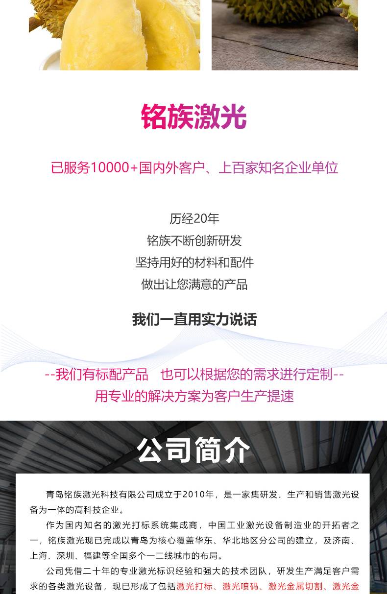 激光打码机榴莲操作方便支持定制实力工厂铭族激光